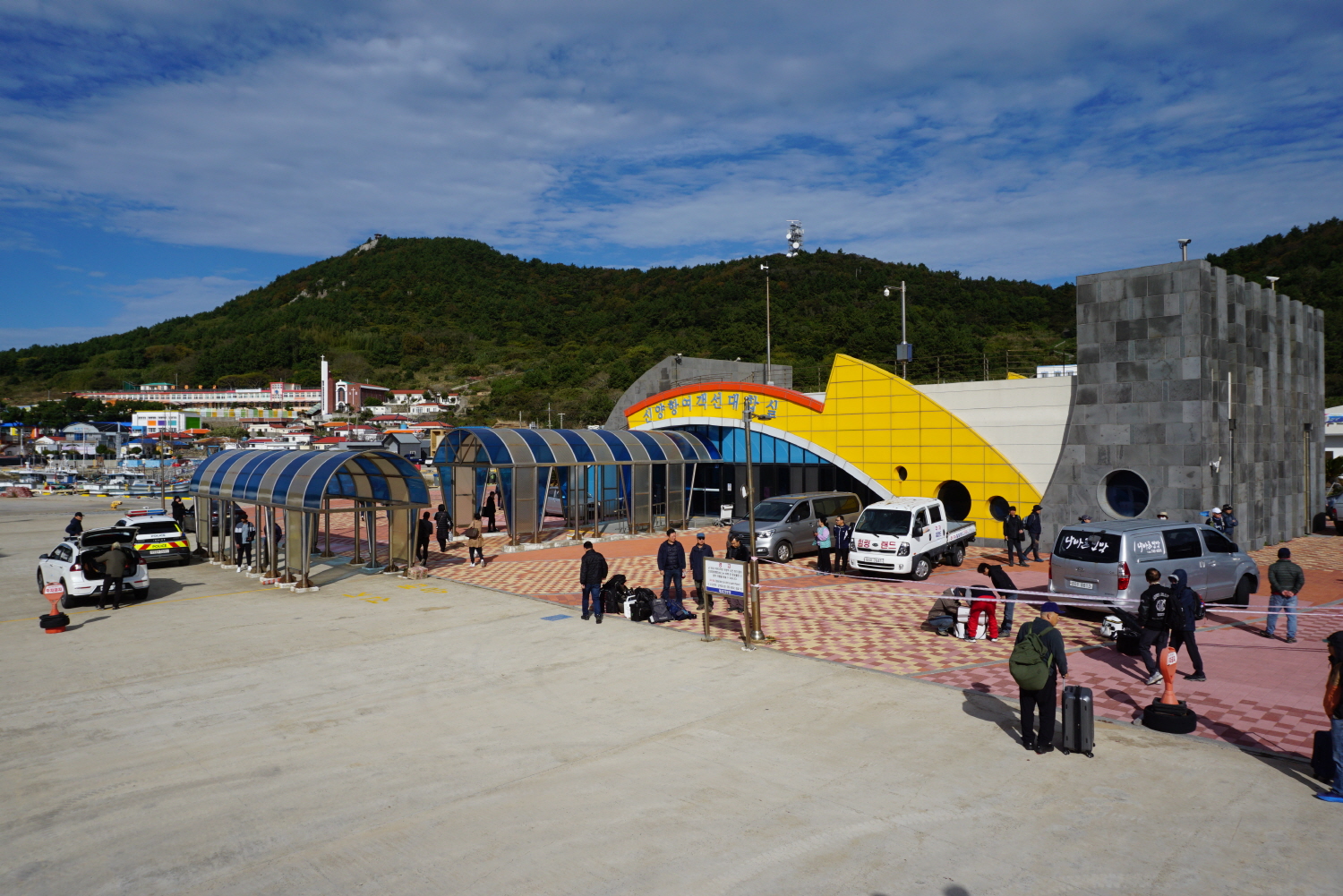 하추자도 신양항에 도착하여 하선중에 여객선 대합실을 바라보고