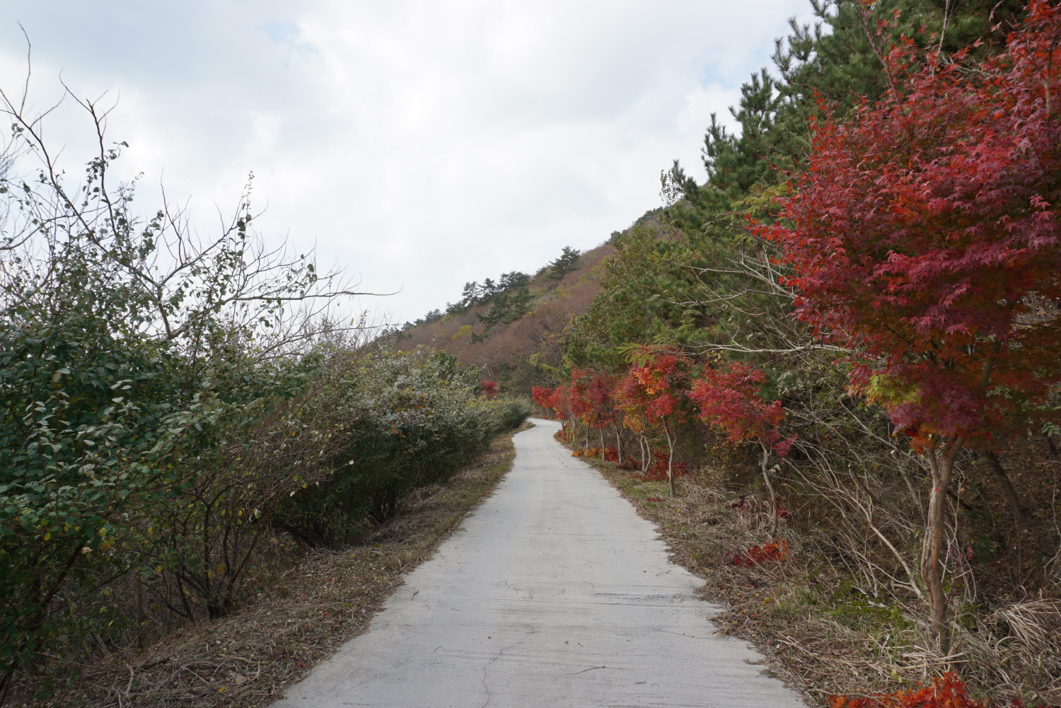 임도에 심어진 단풍나무