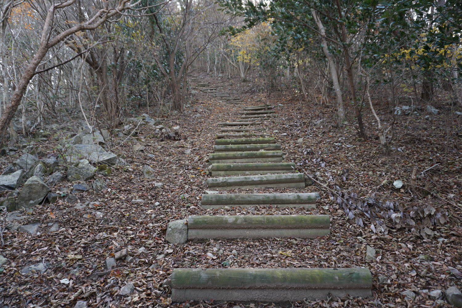 비를 피했다가 멈춘뒤 생일송을 보기위해 나무계단을 오른다,