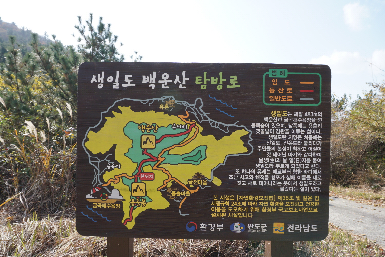 생일도 백운산 탐방로 안내판