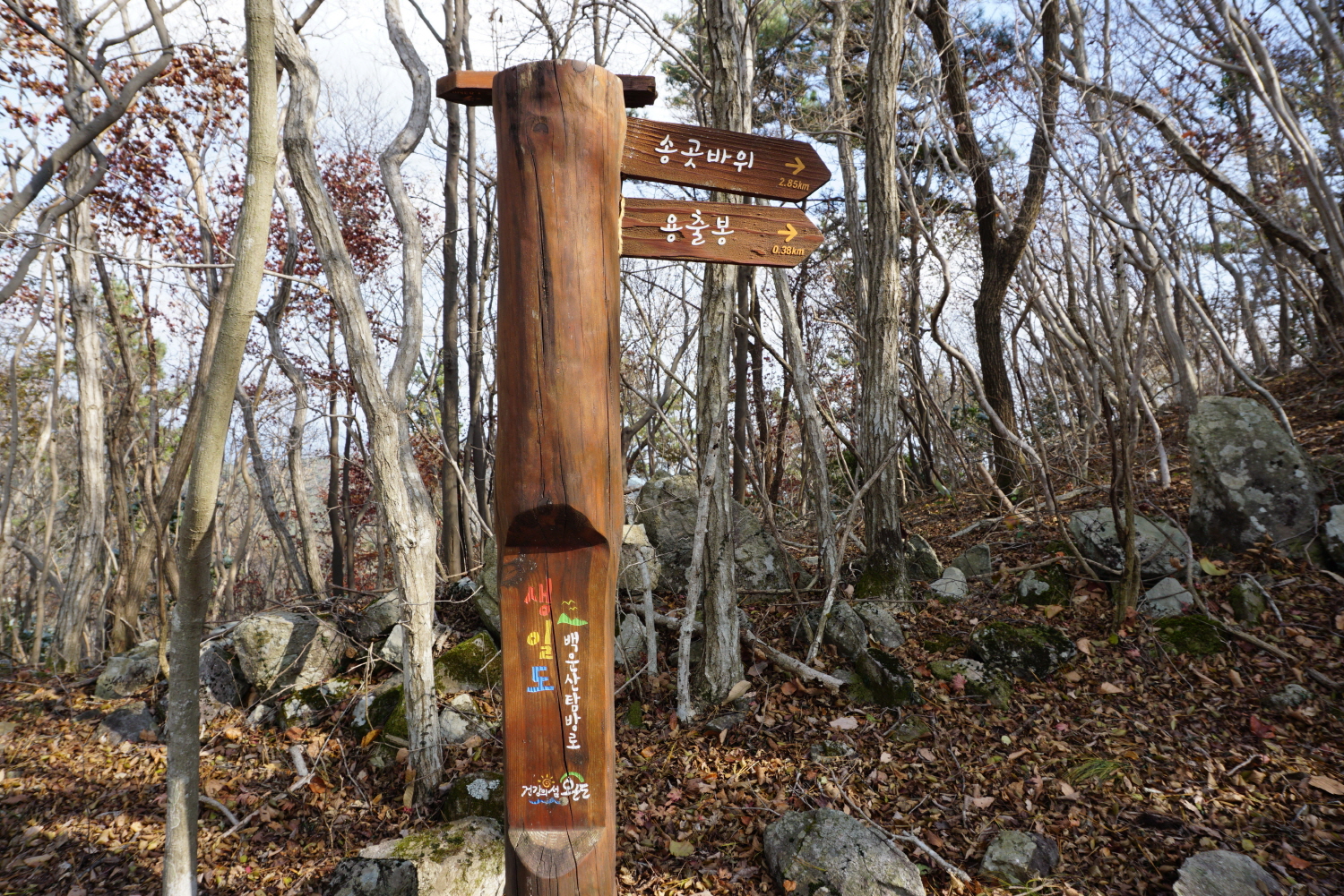 백운산 등산로 이정표 따라 오른다,