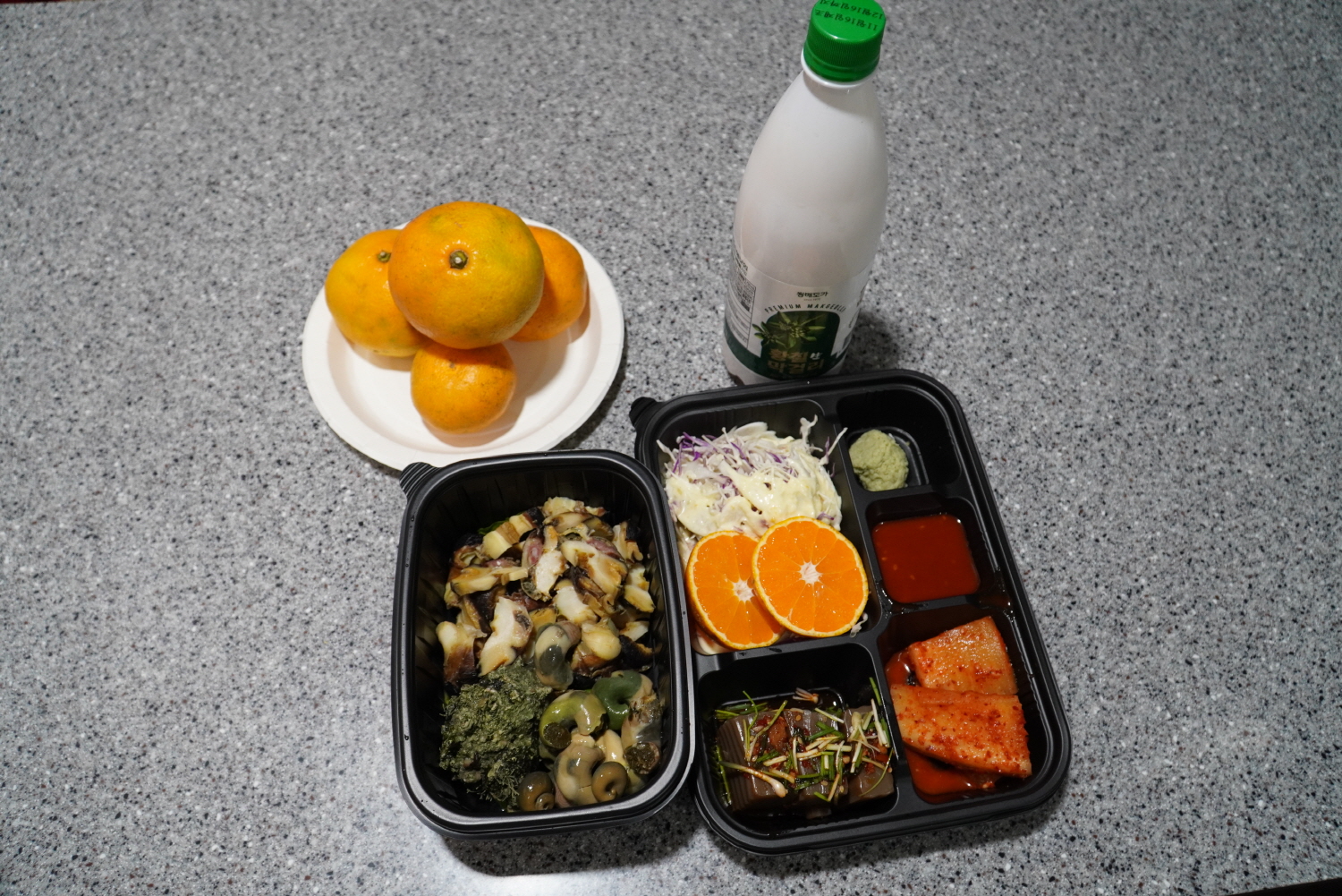 서성항 생돈가에서 저녁을 먹고 뿔소라 안주를 싸들고 숙소로 돌아와 막걸리 한잔