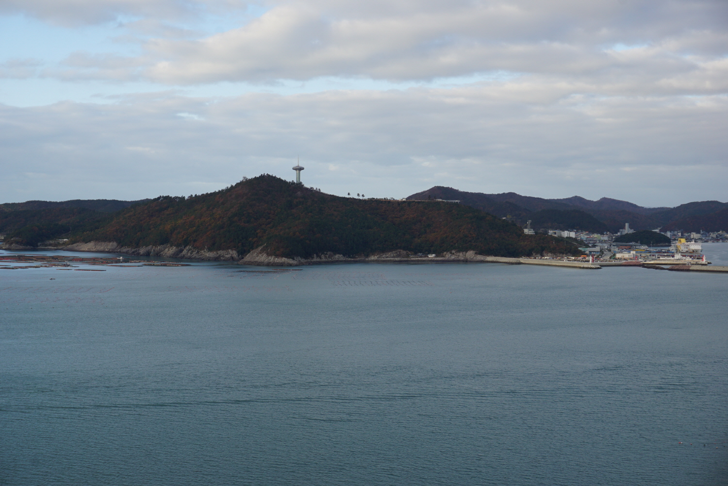 발길을 돌려 되돌아나오며 종점 전망대에서 완도 타워를 바라본다,