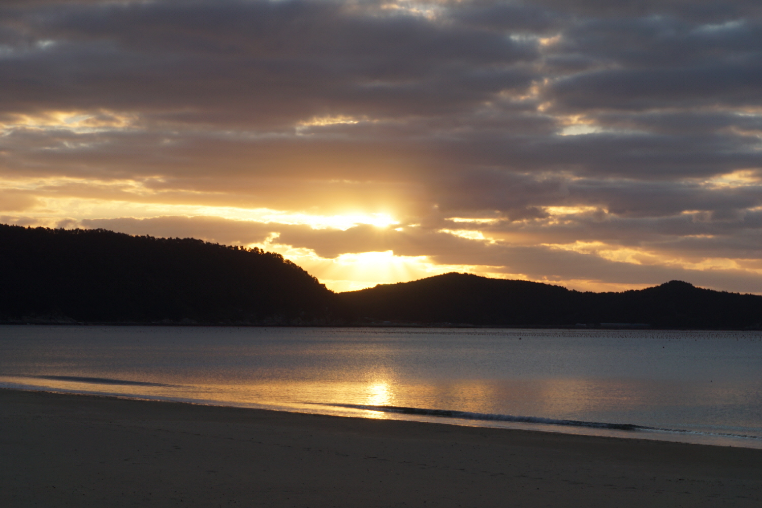구름이 짙게 깔려 명사십리에서의 일출은 그다지 기대하기가 어렵네